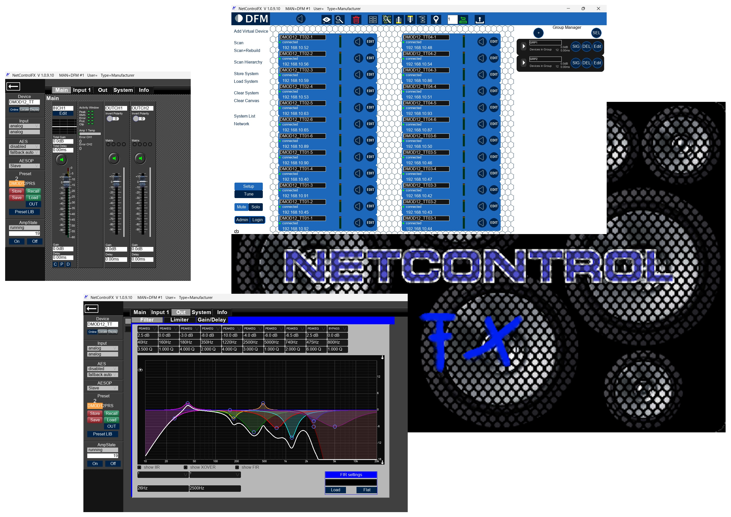 Die NetControl FX Software von DFM bietet eine benutzerfreundliche Bedienoberfläche um all ihre Systeme, vom DSP Modul über Audio Controller bis hin zum Systemverstärker mit DSP Modul, mit einer Software zu bedienen und zu überwachen.